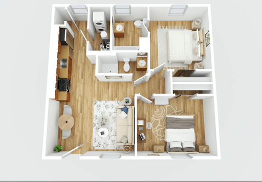 These 2 bedroom, 2 bathroom apartments offer a spacious layout with large bedrooms—each featuring a private bathroom, making it an ideal setup for roommates. The updated kitchen includes quartz countertops, modern cabinetry, and stainless steel appliances, paired with durable vinyl plank flooring throughout the living space.